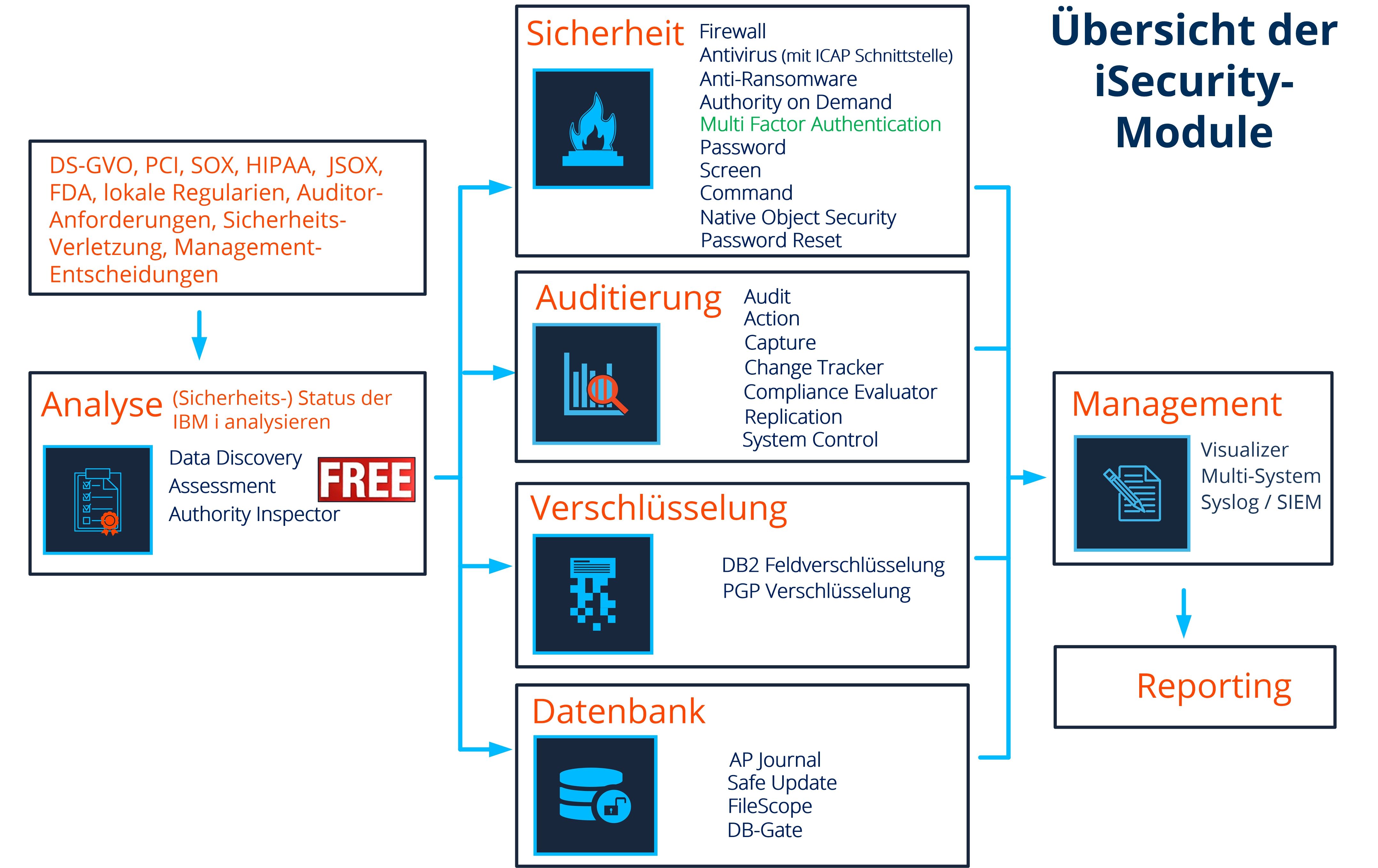 Sicherheit: iSecurity-Module für erweitertes Sicherheits- und IBM i-Server Application MonitoringAuditierung: Module für erweiterte Auditierungsmöglichkeiten und Compliance im IBM i System